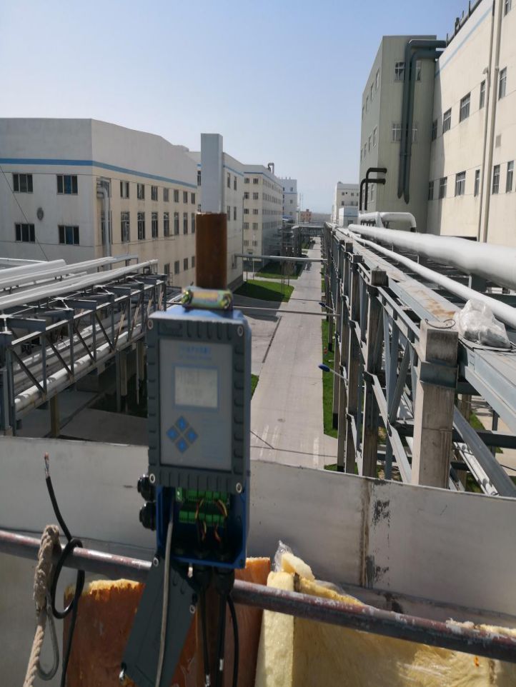 由于該管線已經(jīng)鋪設完畢,沒有預留流量計安裝空間,且該管線附件還有很多平行管線,安裝空間有限,且該管線位于樓頂需要高空作業(yè),故本項目選用插入式超聲波流量計。