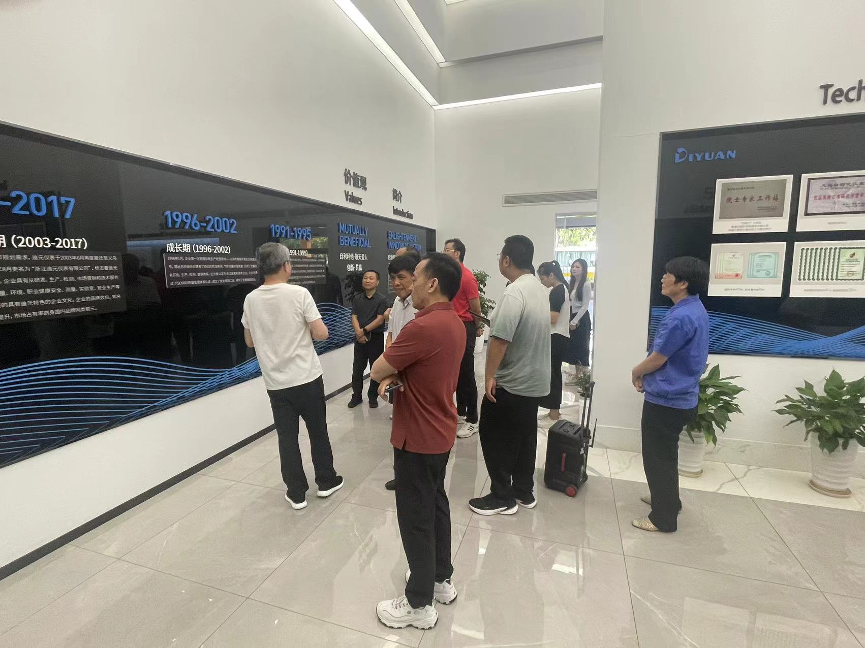 公司高層對遠道而來的貴賓表示了熱烈的歡迎,并親自陪同參觀。在陳總、葉工等領導的引導下,首先參觀了企業(yè)文化展廳,見證了公司從創(chuàng)立至今的發(fā)展歷程與輝煌成就。隨后,一行人深入生產(chǎn)車間,近距離觀察了產(chǎn)品生產(chǎn)現(xiàn)場,感受了迪元人精益求精的工匠精神和對品質(zhì)的不懈追求。